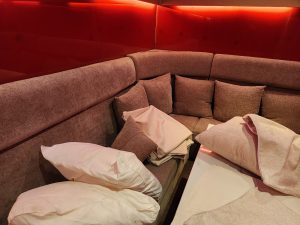 이번 작업의 핵심은 총 네 개의 룸을 각기 다른 분위기로 연출하는 것이었습니다. 기존의 붙박이쇼파 형태는 그대로 유지하면서, 최고급 내장재 보강과 함께 색상과 재질을 달리하여 완전히 새로운 공간으로 탈바꿈시켰습니다.