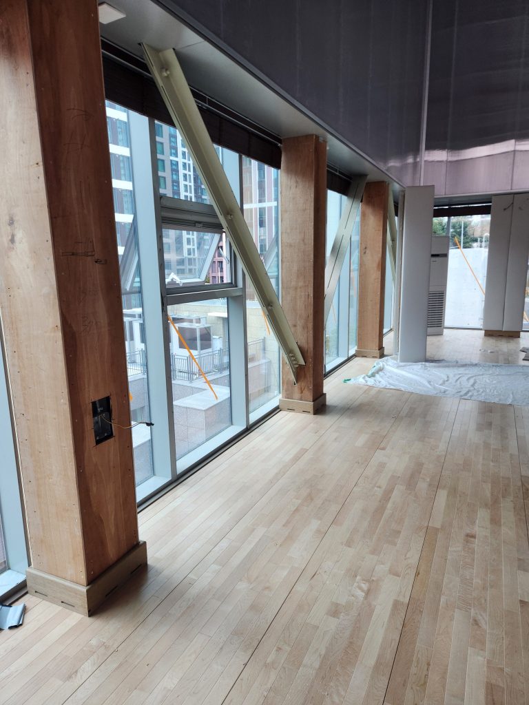 (작업 전 합판 마감 기둥 이미지 : 관악구 체육시설)
