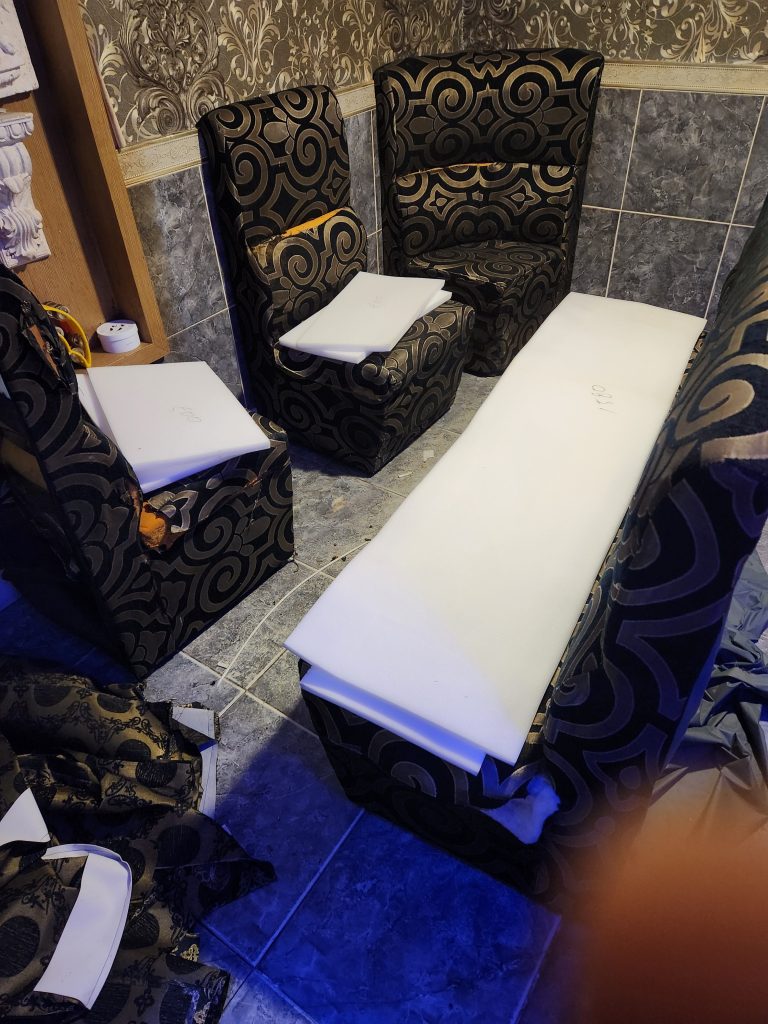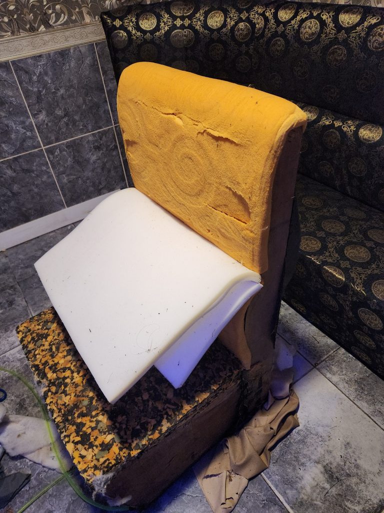 쇼파천갈이 작업시 기존 사용하던 원단을 제거하면 스폰지의 형태가 부서져 있습니다.