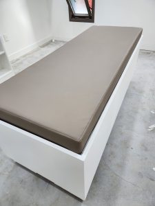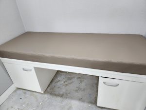 🏥 피부과 대기실 붙박이쇼파 제작 및 진료매트 설치이미지입니다